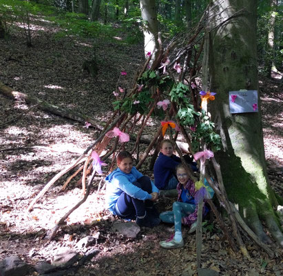 Der Wald wurde für einen Tag zur Bühne des Lebens. Jedes Kind schlüpfte in die Rolle einer anderen Lebensform hinein (ein Tier, eine Pflanze, eines der Elemente,…).
