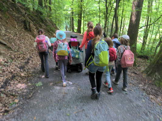 Wir zogen als Esel, Hund, Katze und Hahn in den Wald und lernten die Waldtiere beobachten. Mit ihnen entdecken wir unsere gemeinsame Sprache, die Musik. Die Erstklässler*innen haben bereits auf dem Weg in den Wald und noch im Bus zurück gesungen, gespielt und ein freudiges Miteinander geteilt.